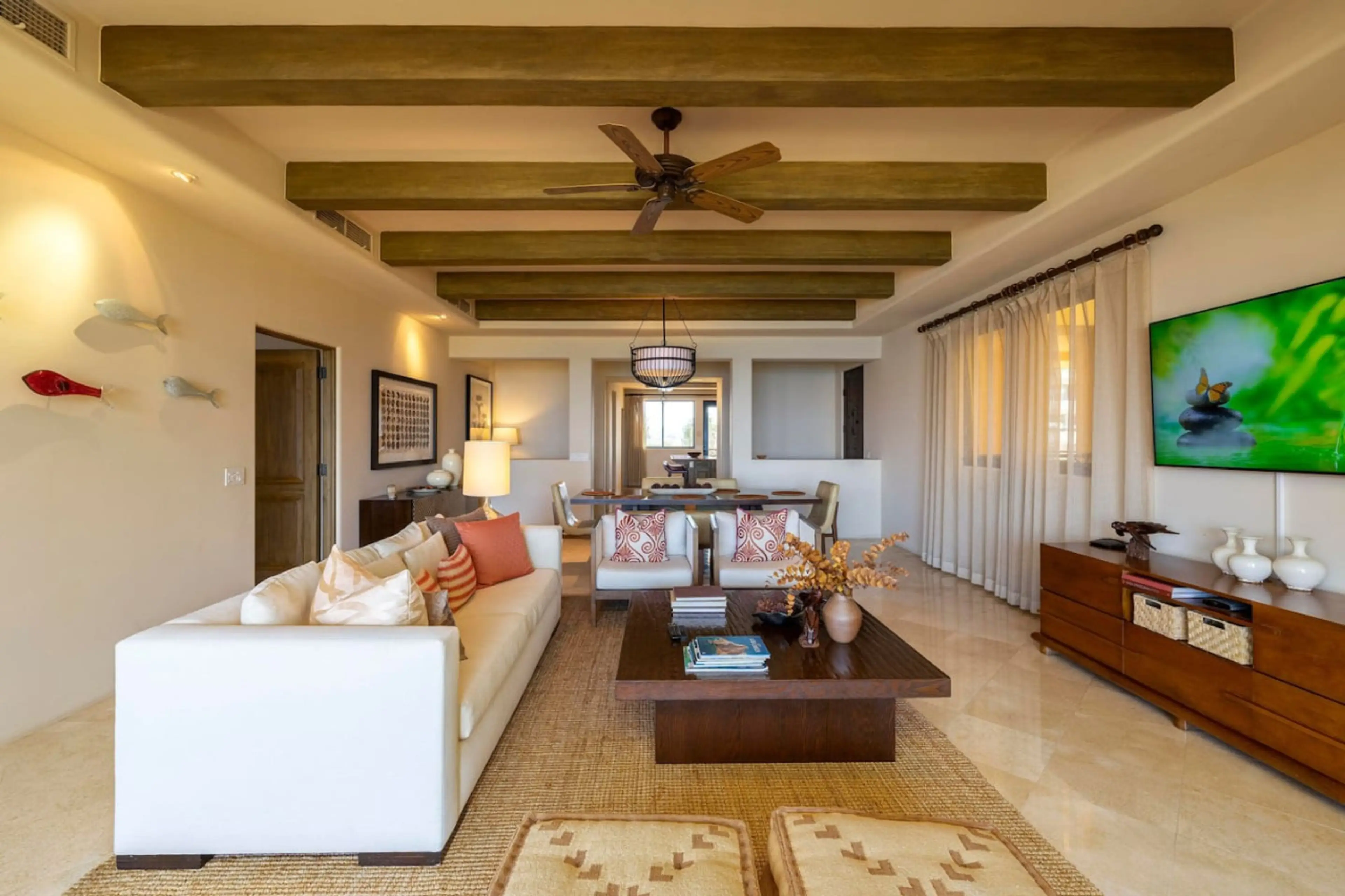 The perfect getaway at The Hacienda Beach Club awaits you in this beautifully decorated 2 BD & 2 1/2 BA fully furnished condo on Medano Beach. Residence 1-404 offers a gourmet kitchen, ocean view main suite, large patios and flat-screen TVs. Enjoy the views of Land's End and the Sea of Cortez with d...